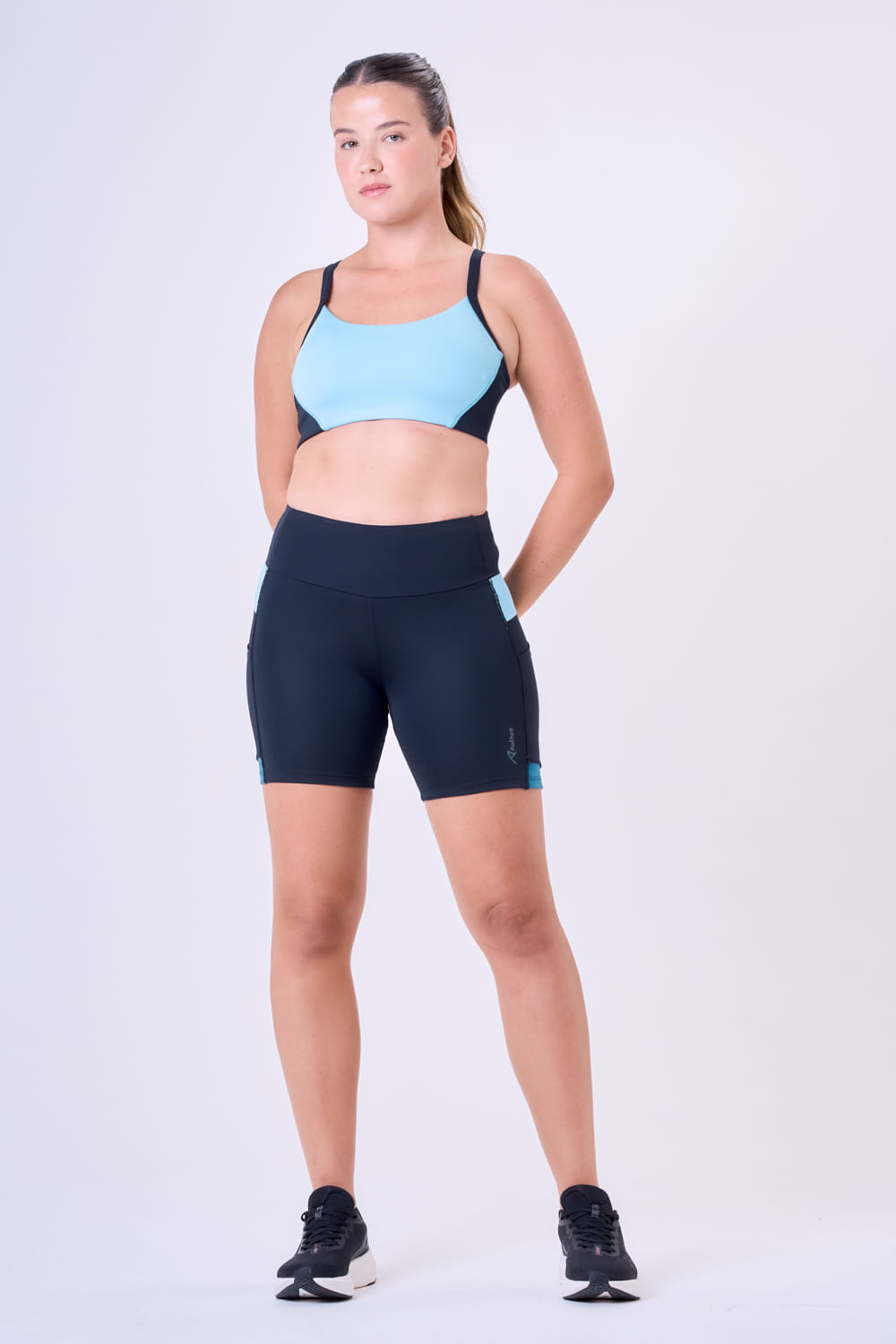 2. Modelagem Exclusiva Authen: Cós anatômico para maior suporte à região abdominal, projetado para auxiliar na consciência postural, evitando desgaste na coluna e preservando a musculatura infra abdominal. Garante ainda que a peça não fique descendo durante a corrida.