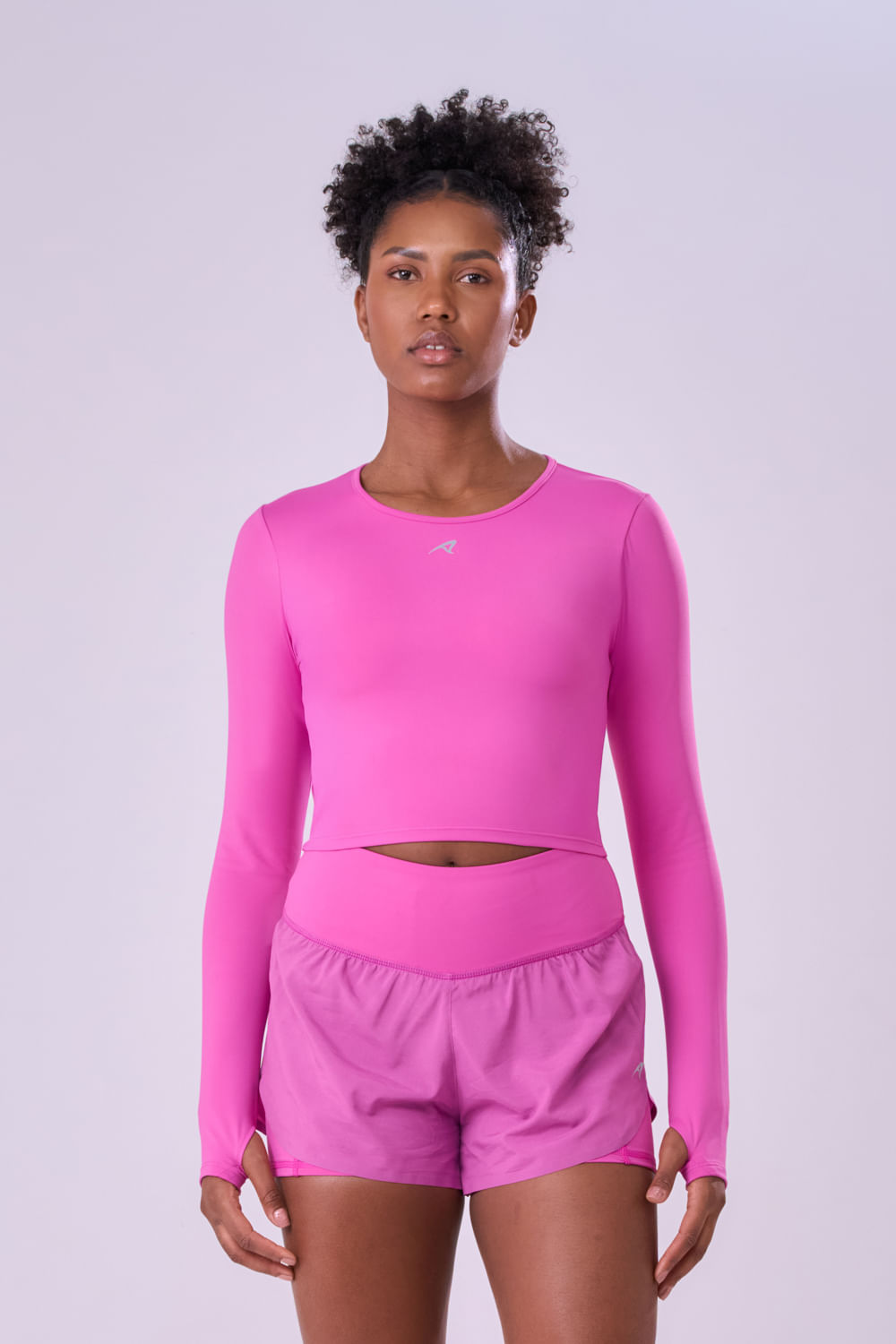 A camiseta para corrida Manga Longa Cropped Signature Samba é projetada para corridas até 21k ou 2h de duração. É indicada para quem busca uma camiseta feminina para corridas de compressão suave e alta elasticidade, para compor o look, e usar sempre por cima de um top.