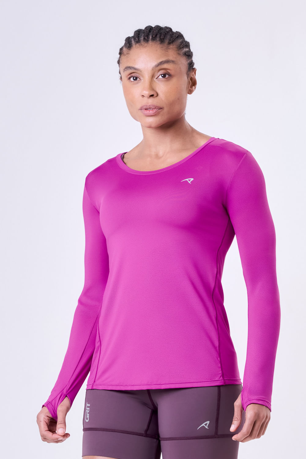 2. Modelagem Exclusiva Authen: Modelagem acinturada, mas sem ficar colada ao corpo. Recorte frontal que valoriza o desenho da silhueta. Abertura para polegar que protege o dorso da mão do vento/frio e do sol.