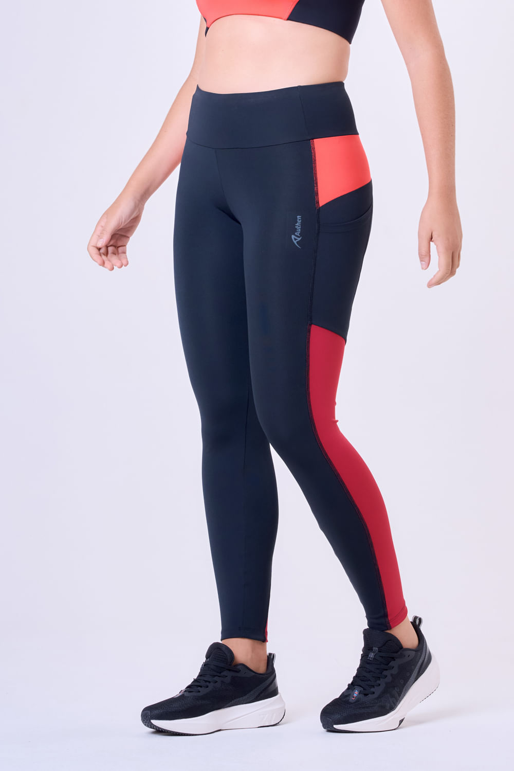 2. Modelagem Exclusiva Authen: Cós anatômico para maior suporte à região abdominal, projetado para auxiliar na consciência postural, evitando desgaste na coluna e preservando a musculatura infra abdominal. Garante ainda que a peça não fique descendo durante a corrida.