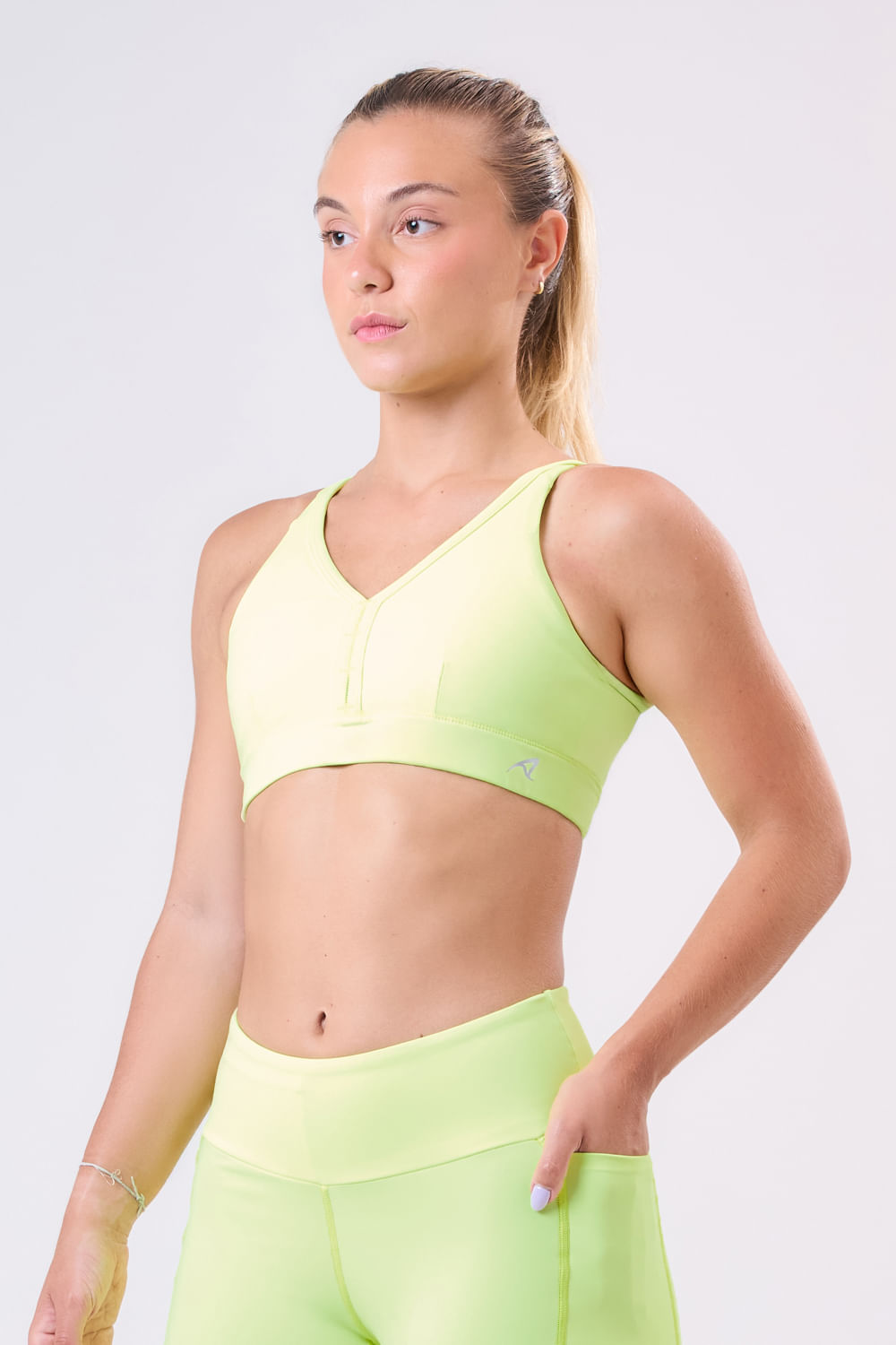 O top esportivo Decote V Alças Energy é um equipamento que oferece a segurança da média compressão para corridas até 10km ou que não ultrapassam 1h. Indicado para quem busca um top antiflacidez e prefere o ponto de sustentação central.