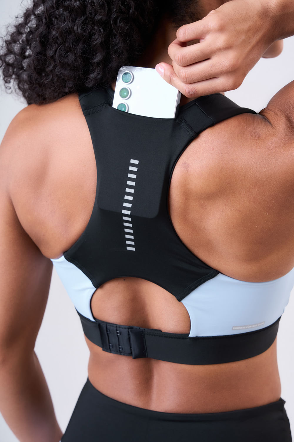O top esportivo de alta sustentação GRIT Bossa Ajustável 1 Bolso Nadador é um equipamento projetado para longas distâncias e dias de competição. Indicado para quem busca um top antiflacidez e prefere o ponto de sustentação central.